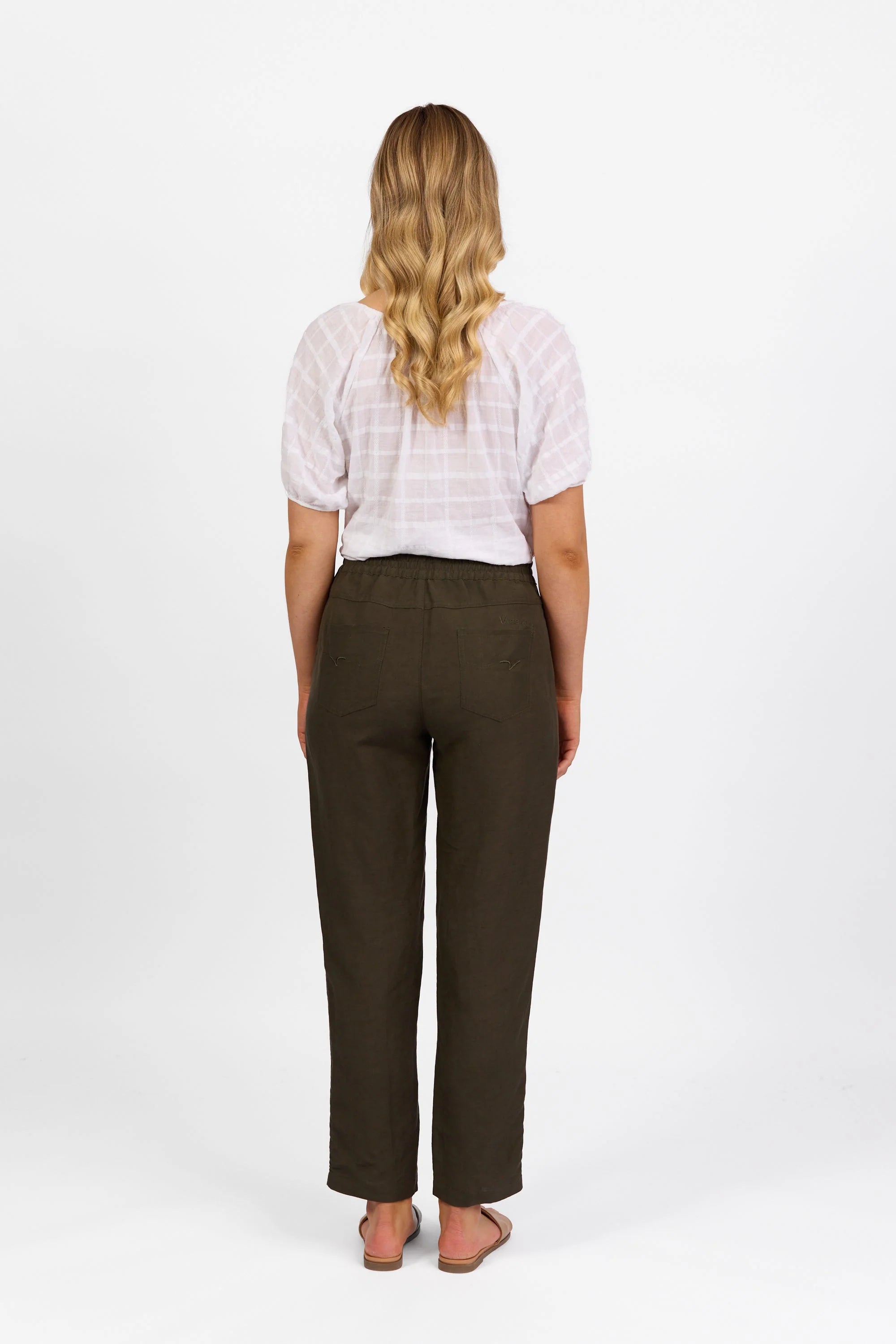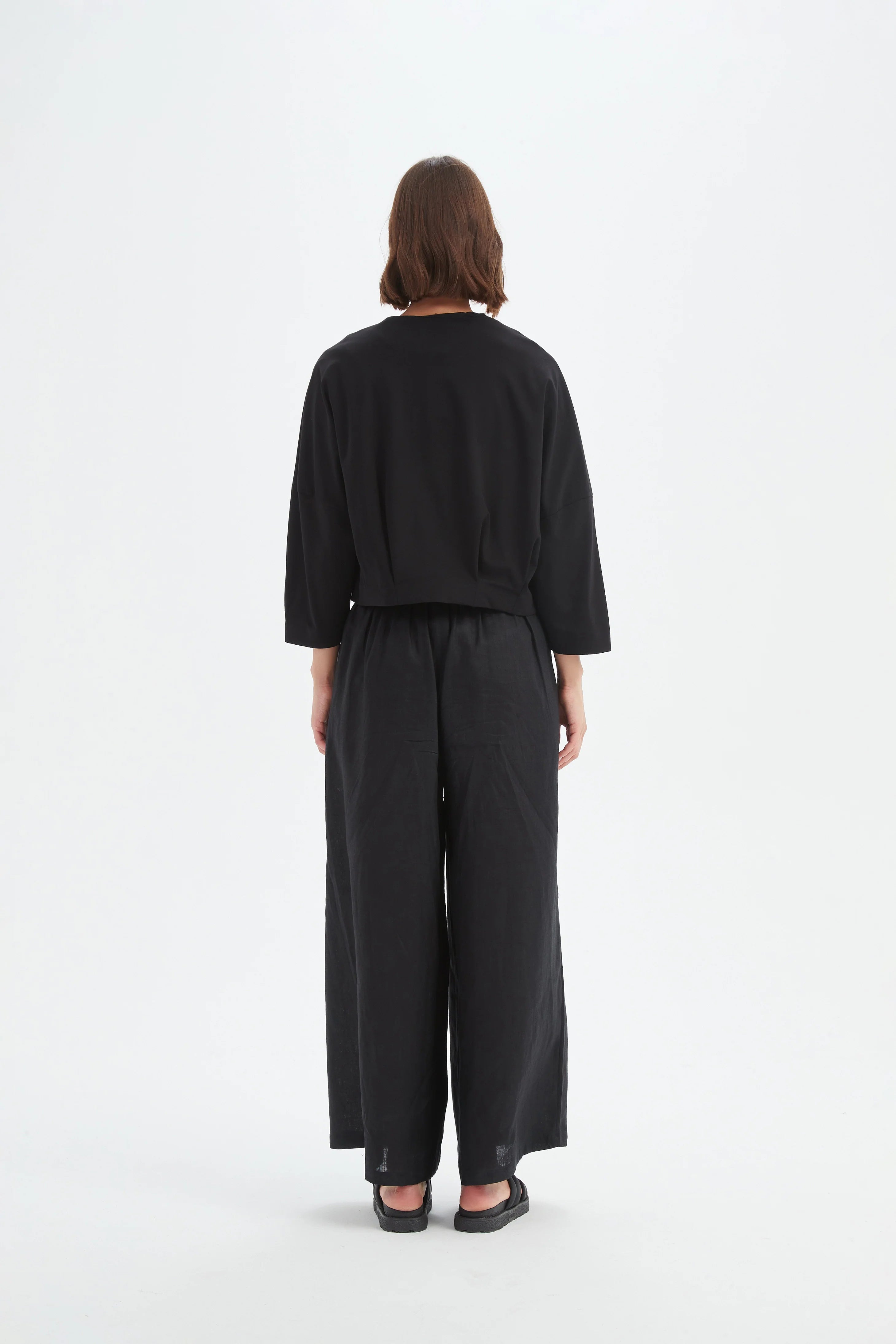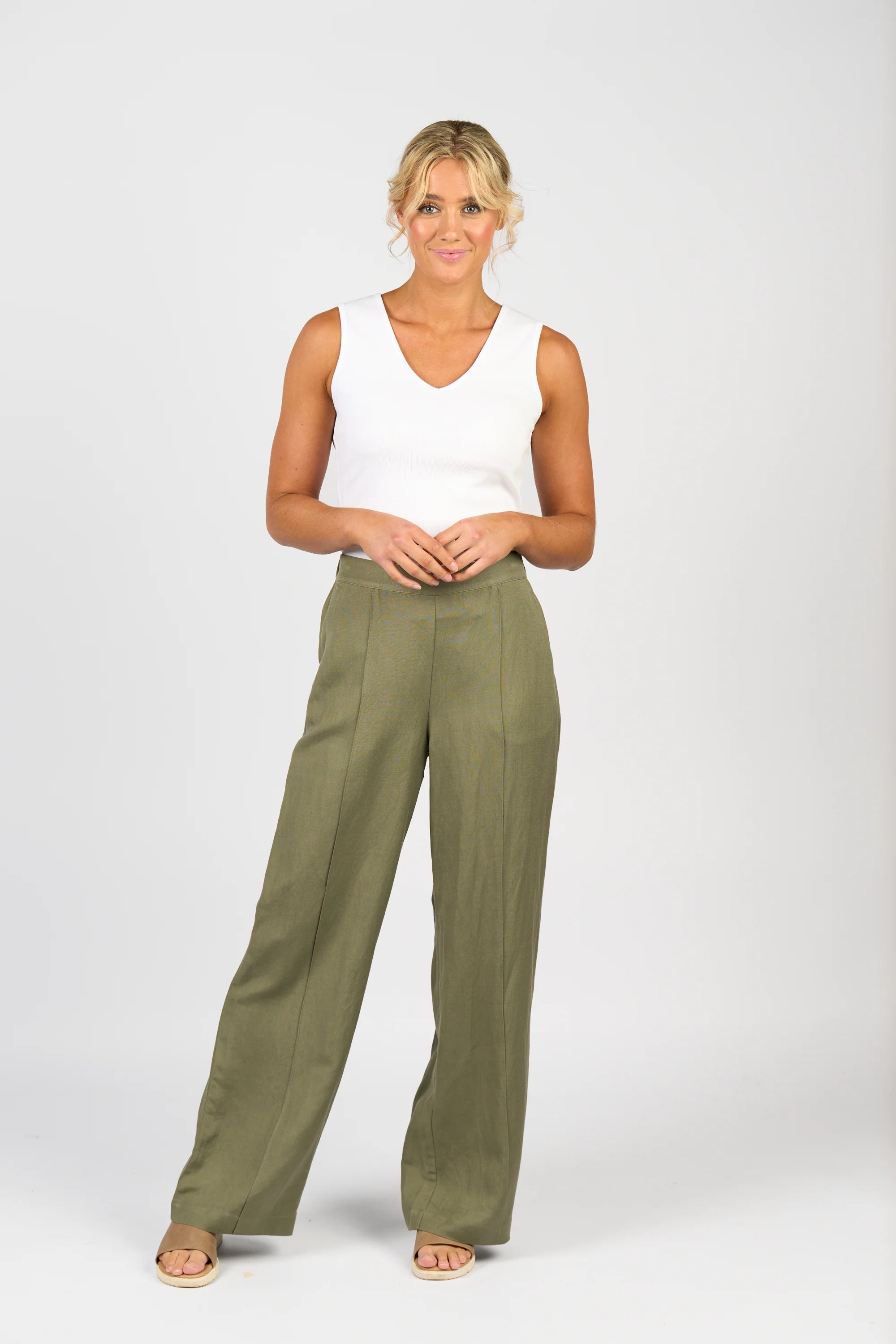 Size GuideA wide leg, full length pull-on pant made from a soft linen-viscose blend for a breathable, fluid feel. Designed with a flat front, elasticated back waistband, front pintucks to elongate...