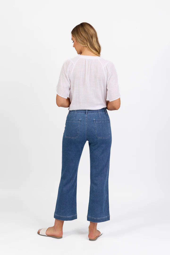 Size GuideMeet your new wardrobe staple – the 7/8 Denim Wide Leg Pant. Crafted with a blend of cotton and elastane, these pants offer both comfort and a hint of stretch...