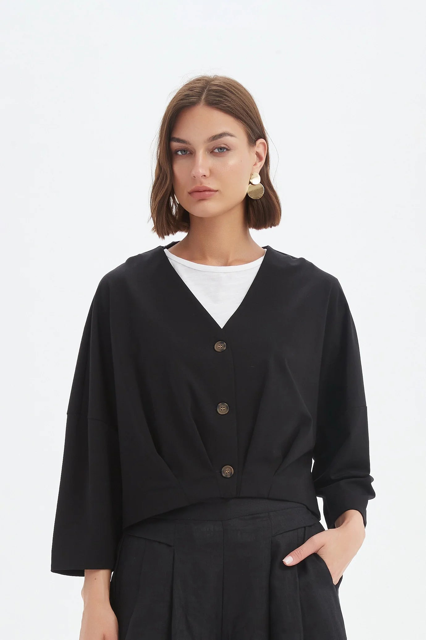 Size GuideSnuggle up in chic comfort with Two 's Cropped Button Through Cardigan! Designed for those who appreciate the finer things, this cardigan is crafted from a luxurious blend of cotton...