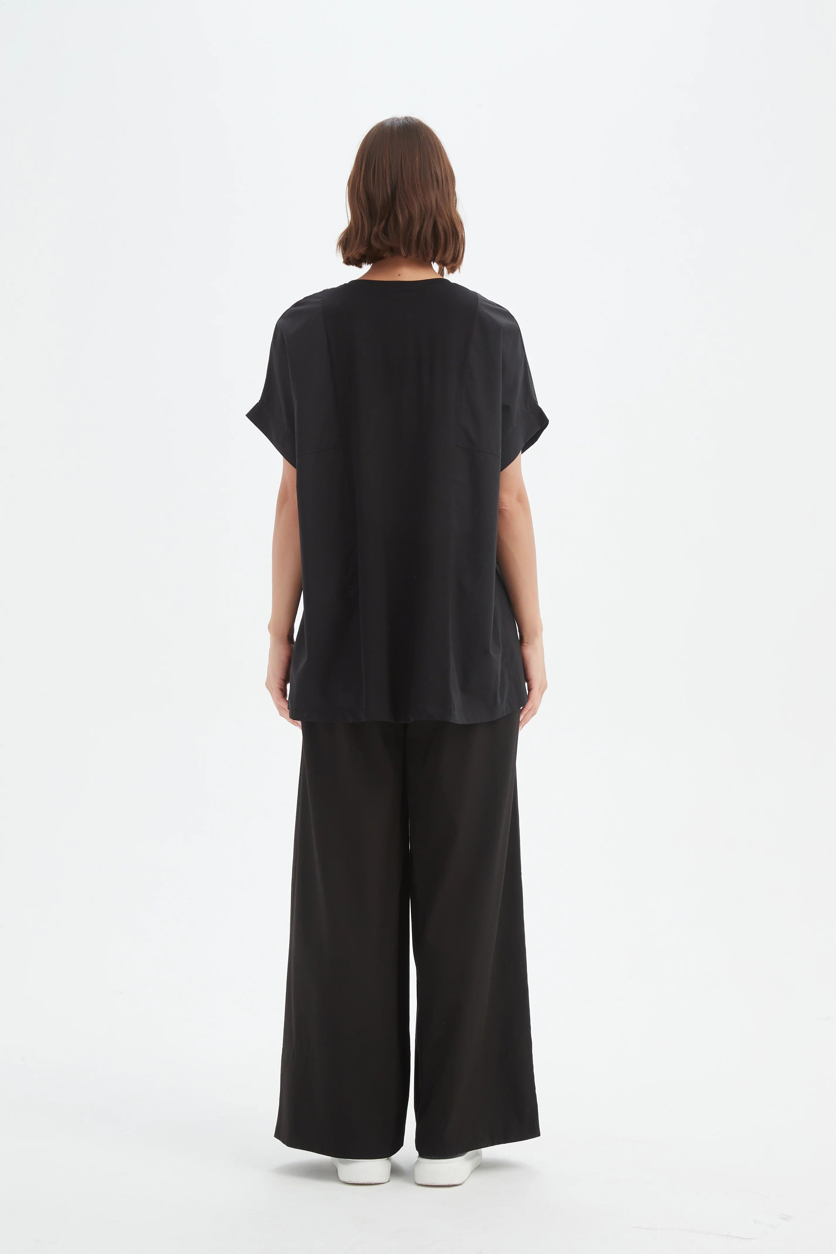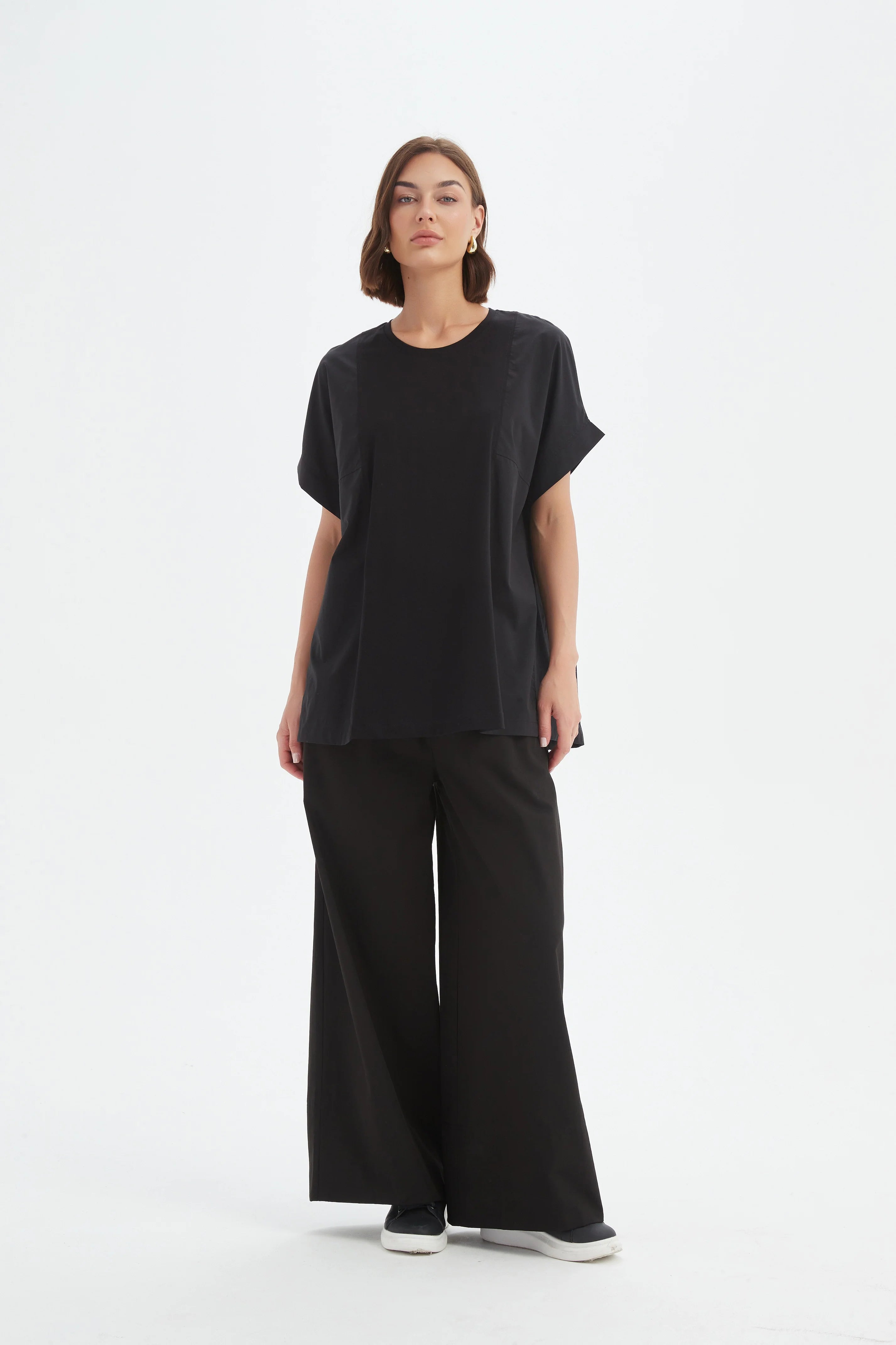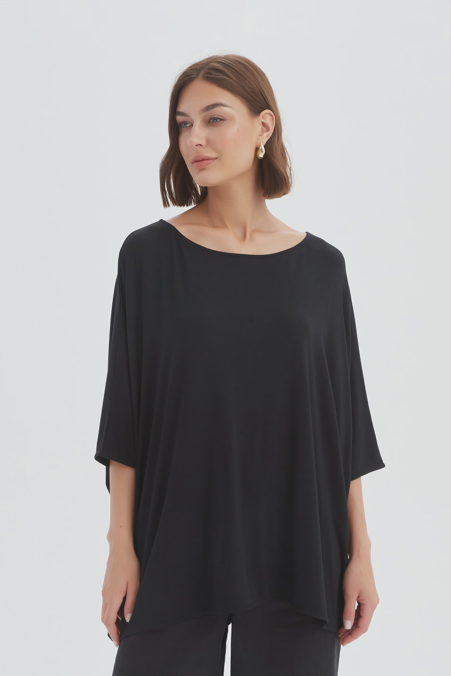 Size GuideAn easy essential with a contemporary edge. The Oversized Boxy Tee is cut from soft jersey with a relaxed drape, featuring batwing sleeves and a scoop neckline for a laid-back...
