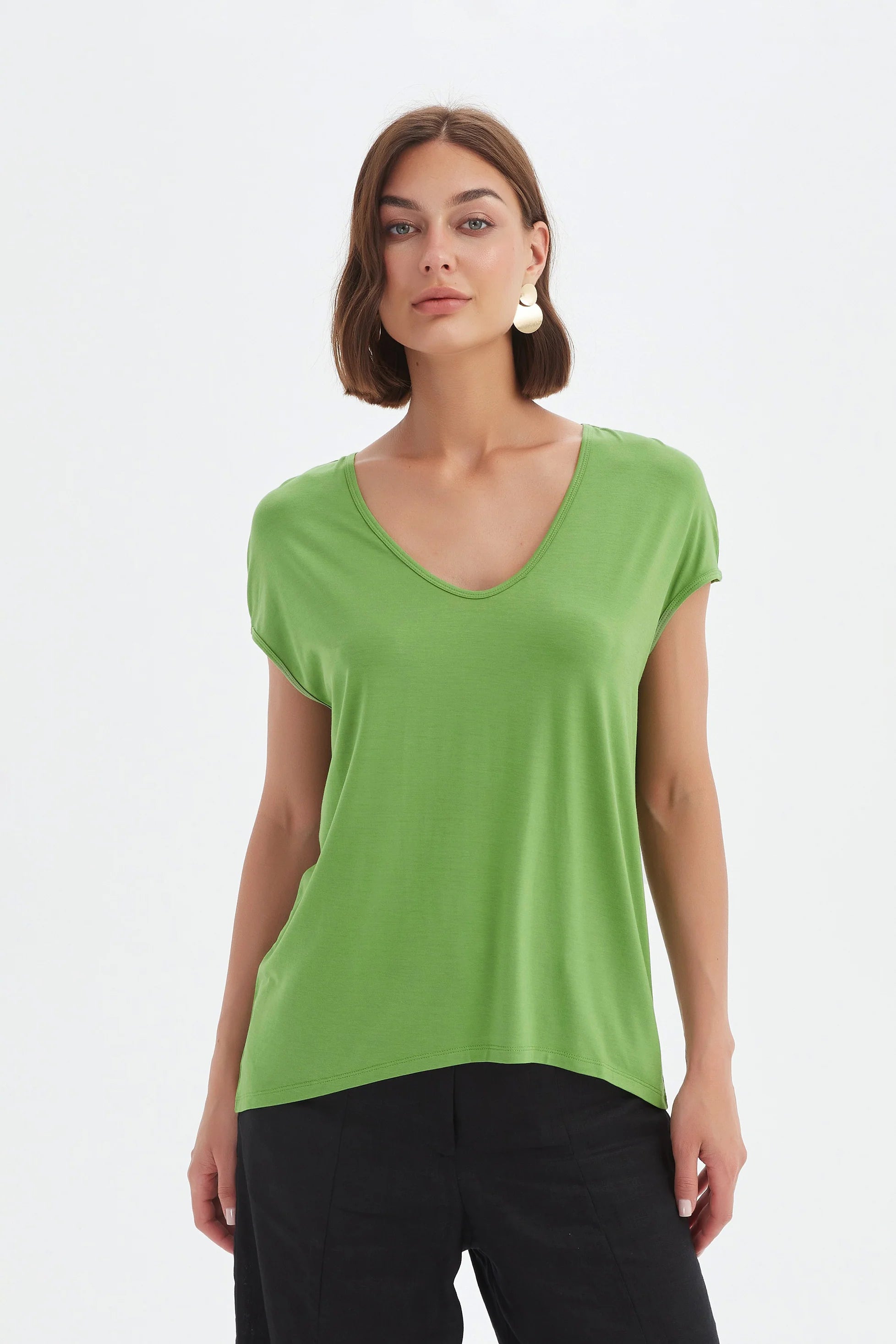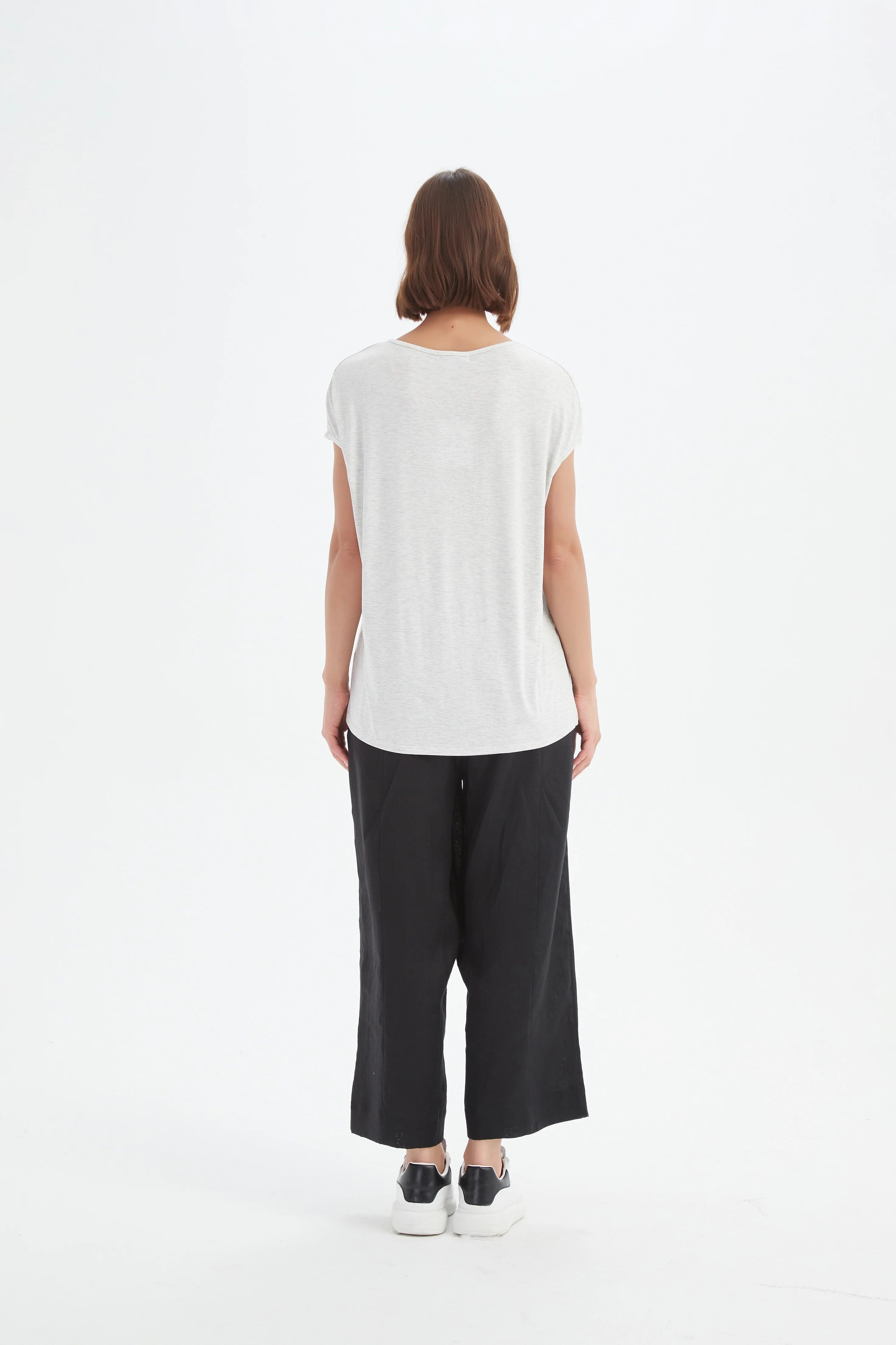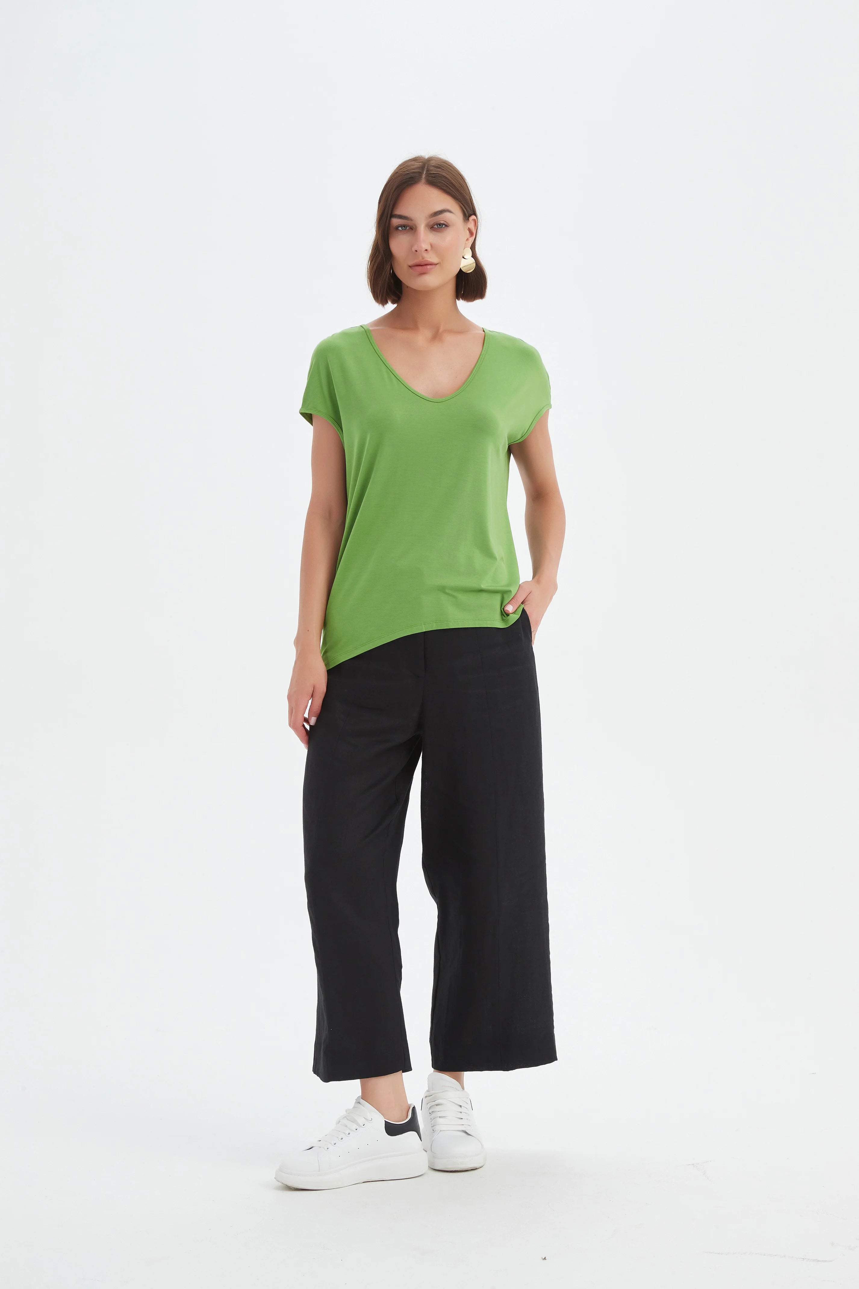 Size GuideA sleek and versatile essential, the Deep V Cap Sleeve Tee is crafted from a soft, slinky jersey for effortless drape and comfort. Featuring cap sleeves, a flattering V-neck, and...