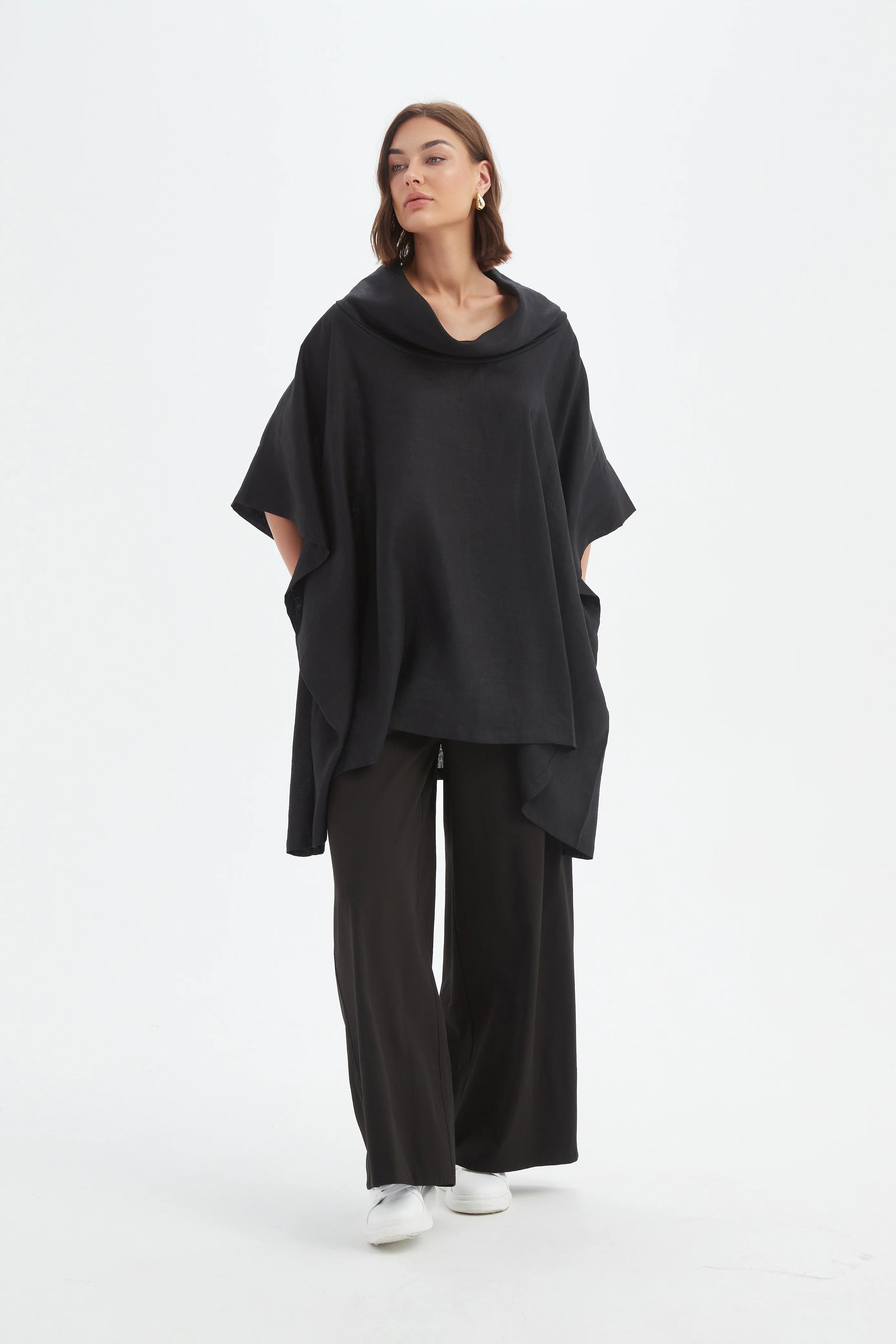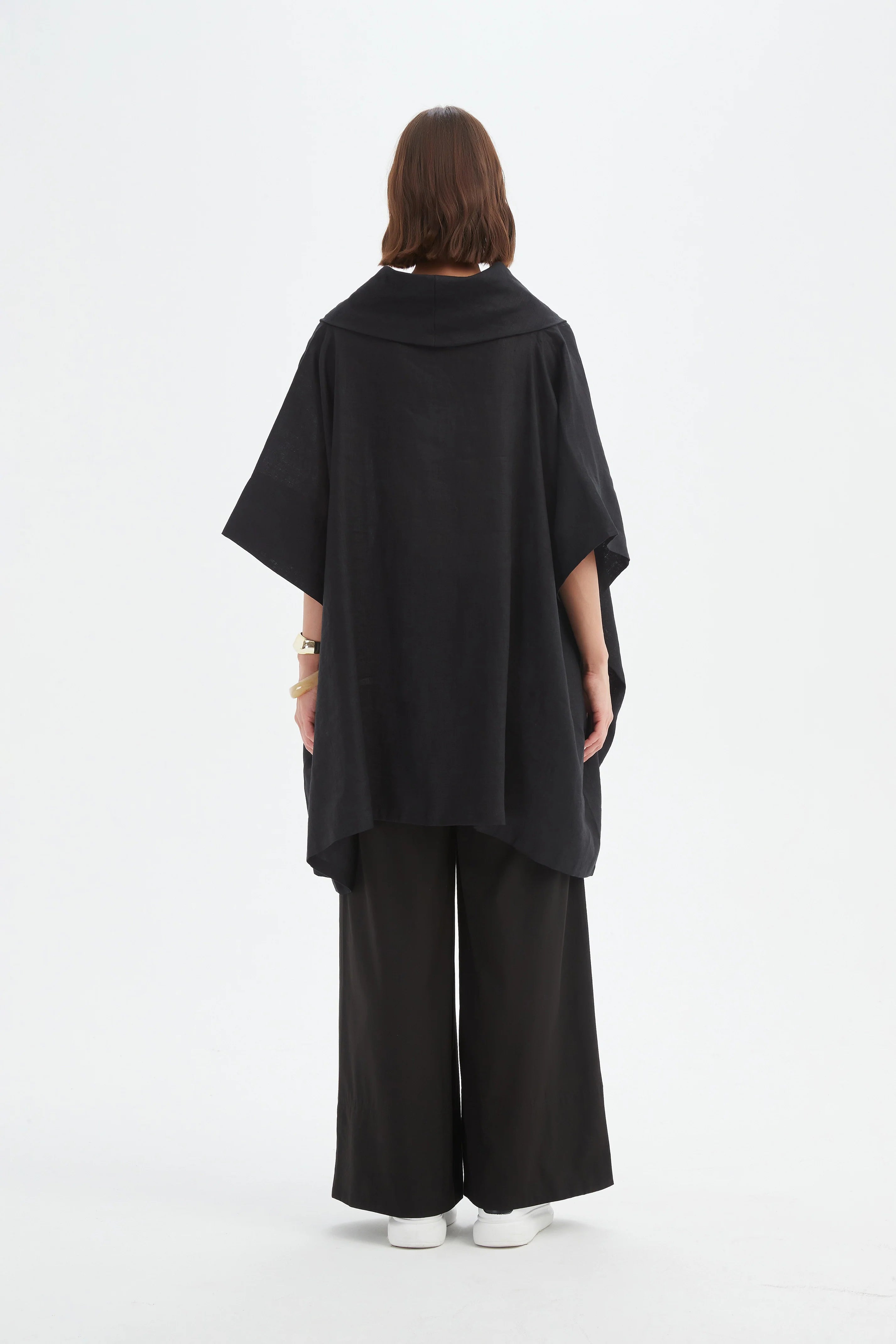 Size GuideAn effortless layer with timeless appeal, the Oversized Collar Linen Poncho is crafted from lightweight linen in a relaxed silhouette that drapes beautifully. With an oversized cowl neck, wide sleeves,...