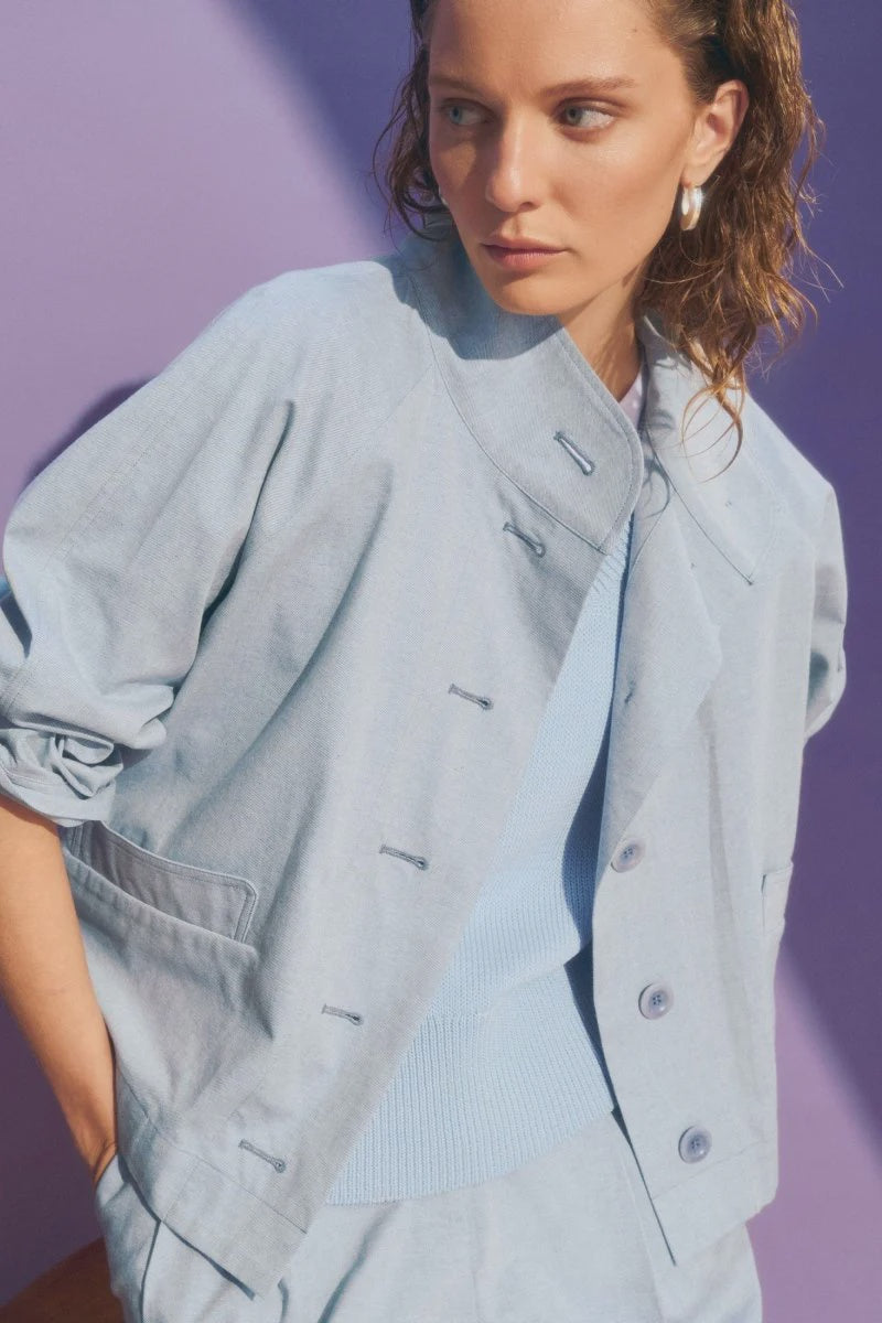 Size GuideThe Hanning Jacket is a lightweight, smart, casual jacket crafted from a woven, organic cotton, with a light chambray twill appearance and elevated structure. This regular fit jacket features a...