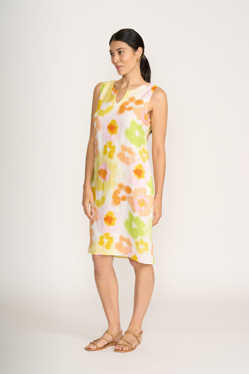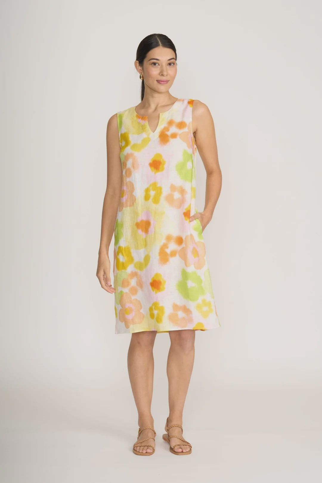 Size GuideThis charming linen dress is your go-to piece for sunny weather. Made from breathable, tactile linen fabric, it features a sleeveless silhouette with a graceful round neckline and subtle cut-out...