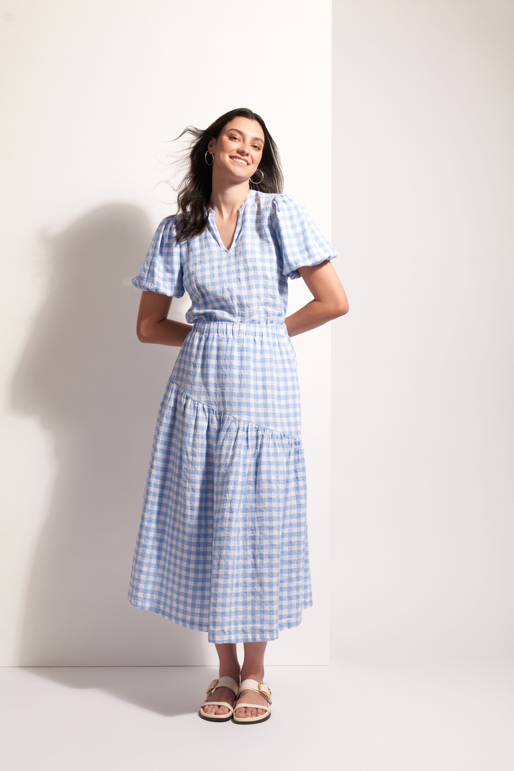 Size GuideThe In Tucks Skirt has a smooth flat front, an elasticated waistband at the back, handy side pockets, and a flattering a-line shape that hits at midi length. With tuck...