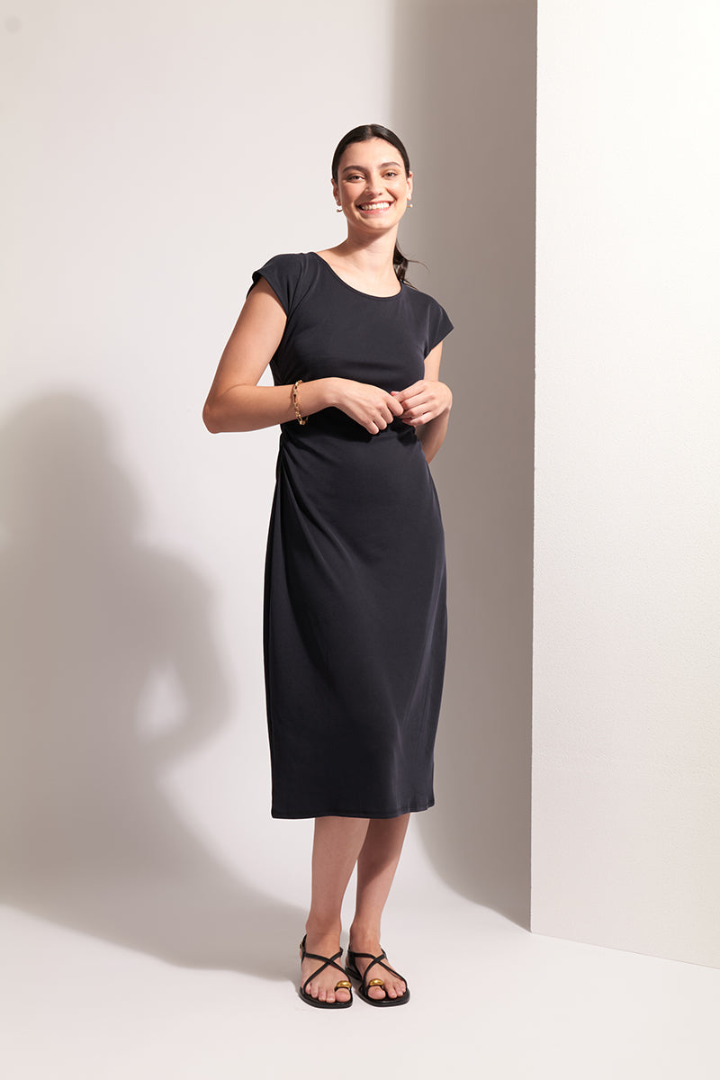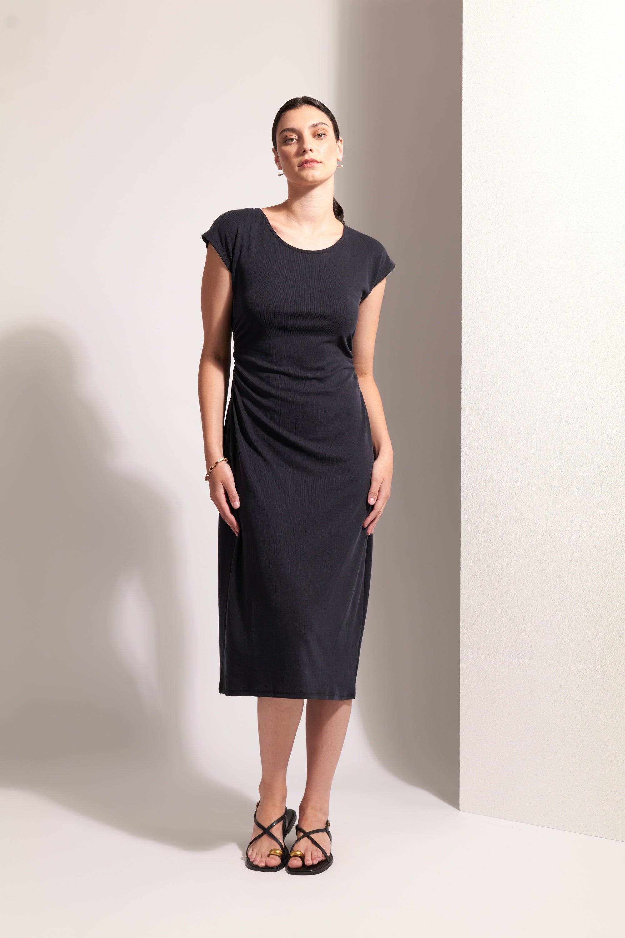Size GuideIntroducing the FO8351 High Flyer Dress in Black by Foil – your go-to piece for effortless elegance. This midi dress combines comfort with timeless style, featuring a luxurious stretch modal...