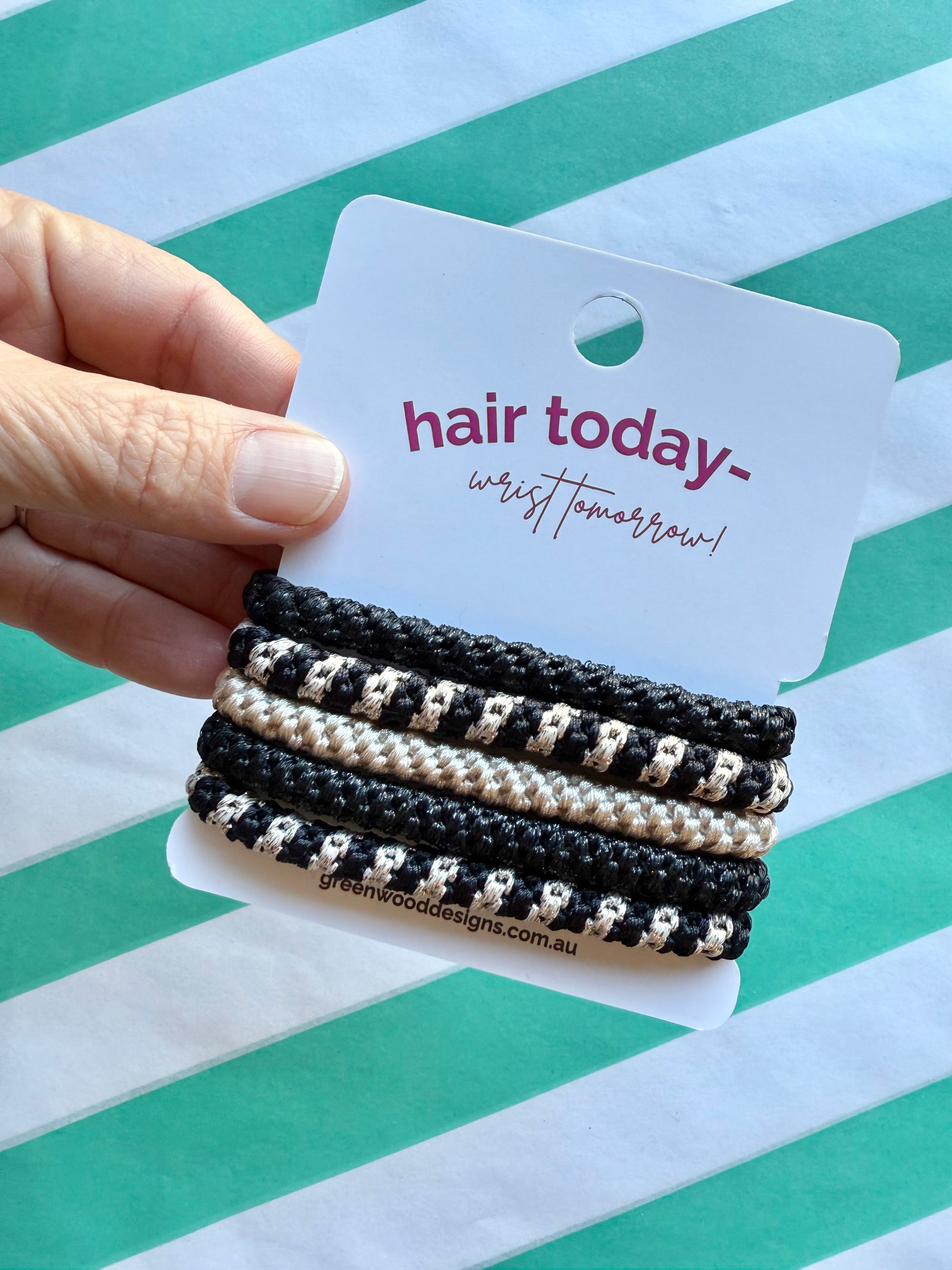 Size GuideKeep your locks secured in style with these charming hair elastic collection. Each card features five versatile elastics that work as hard as you do—whether you're tying up your hair...