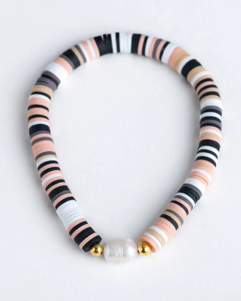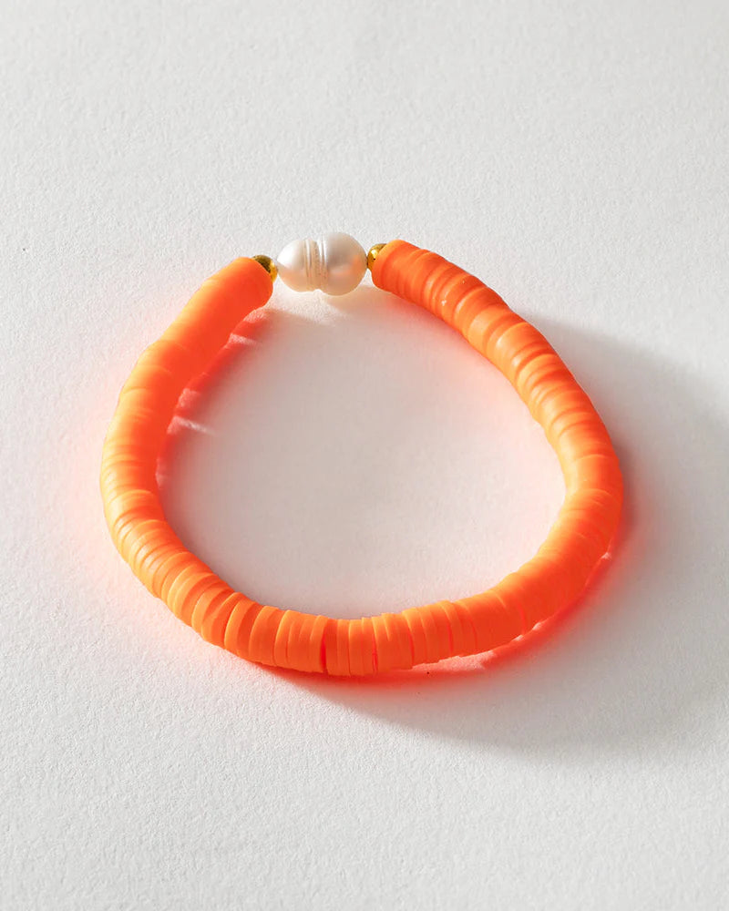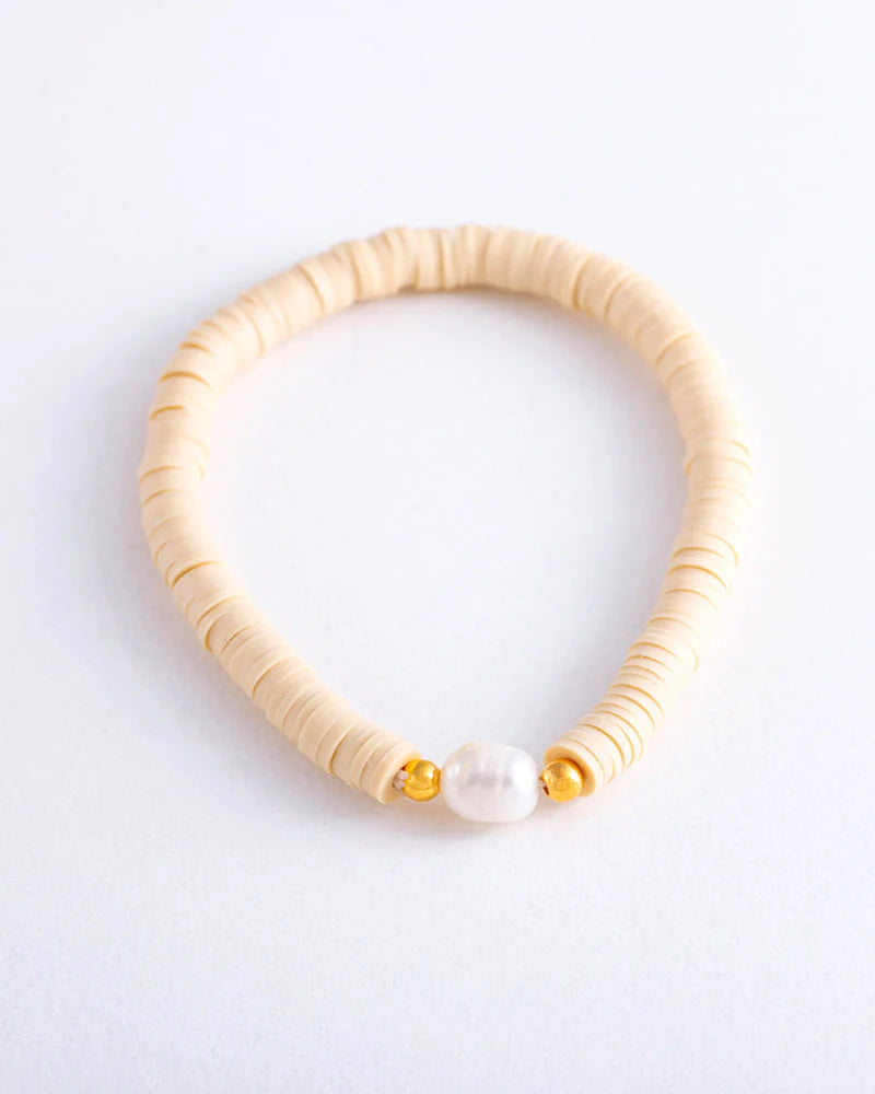 Size GuideDiscover the perfect accessory with these pearl pop heishi bead bracelet. Crafted with delicate heishi beads, a lustrous freshwater pearl, and elegant gold accents, this stretchy design suits stylish young...