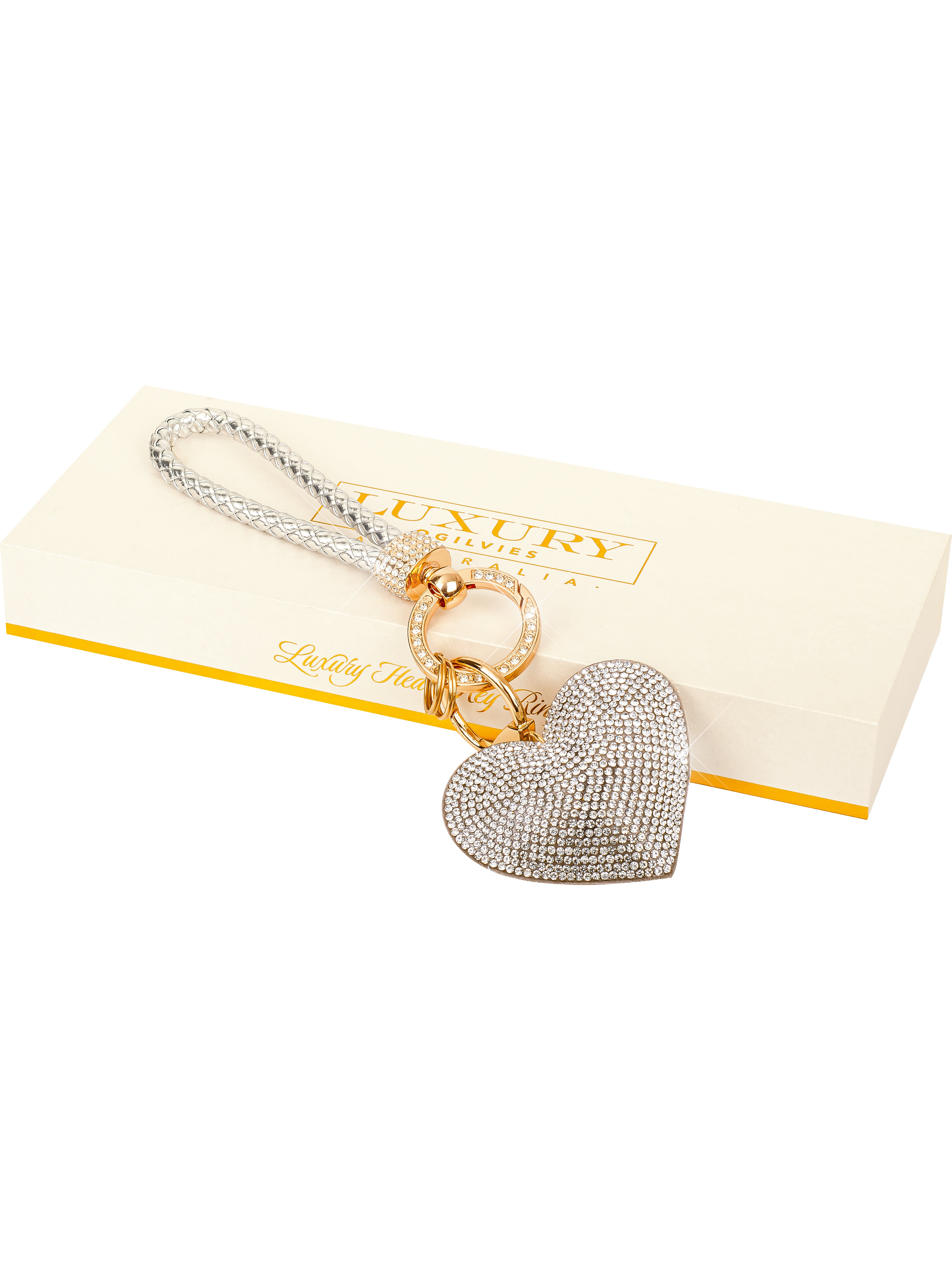 Size GuideSparkling Diamonte Love Heart Key Ring in Luxury Gift Box. A diamonte encrusted love heart key ring for the most glamorous fashionista.Accessorise your hand bag or simply add some sparkle...