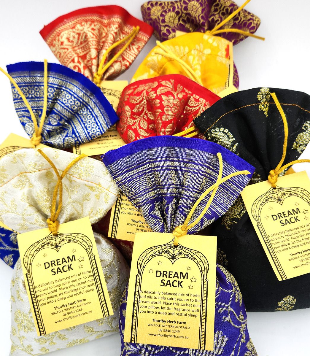 Size GuideMagnificent sari fabric containing Thurlby Herb Farm's famous 'Dream' mix, a delicate balance of herbs and oils to help spirit you on to the dream world. Place this sachet near...