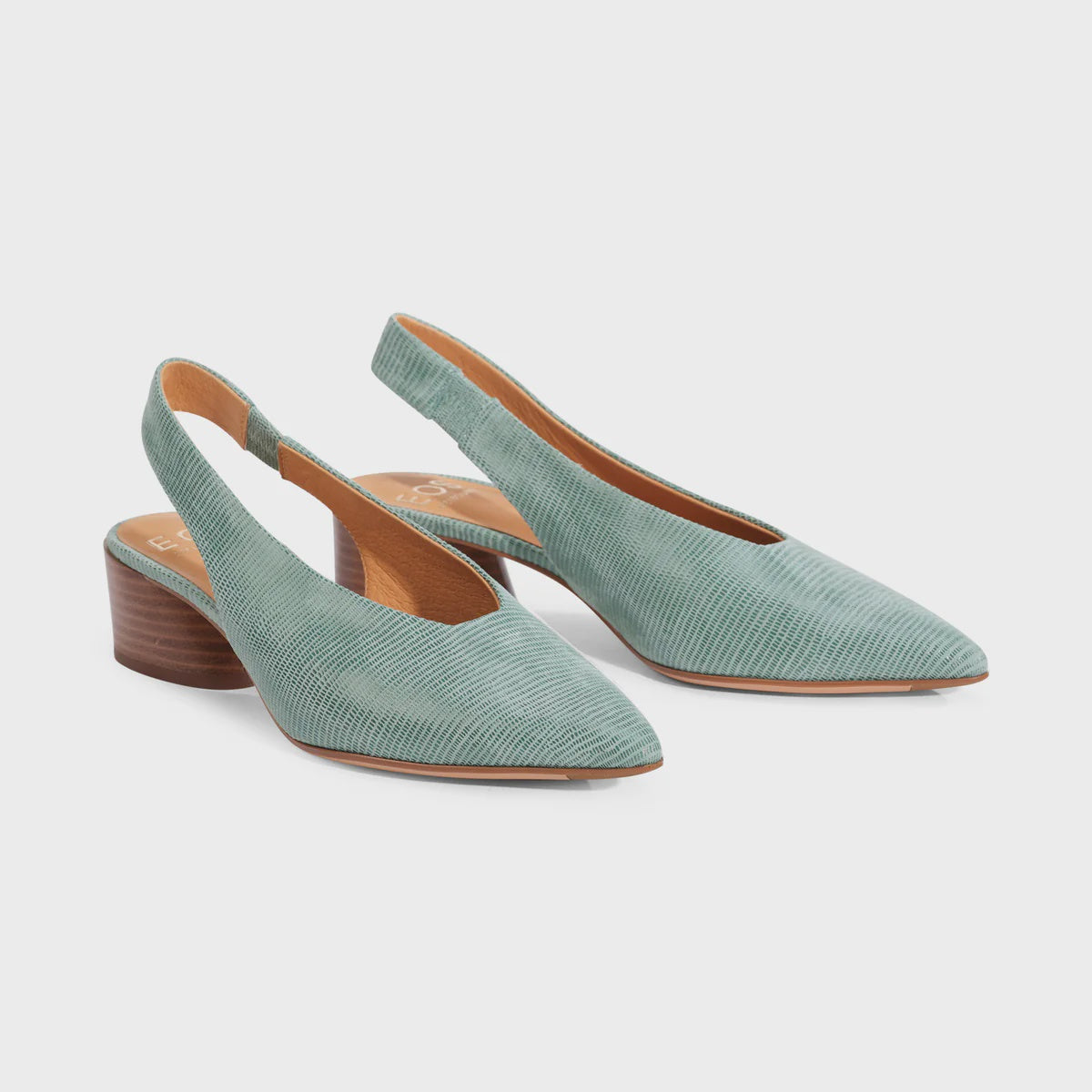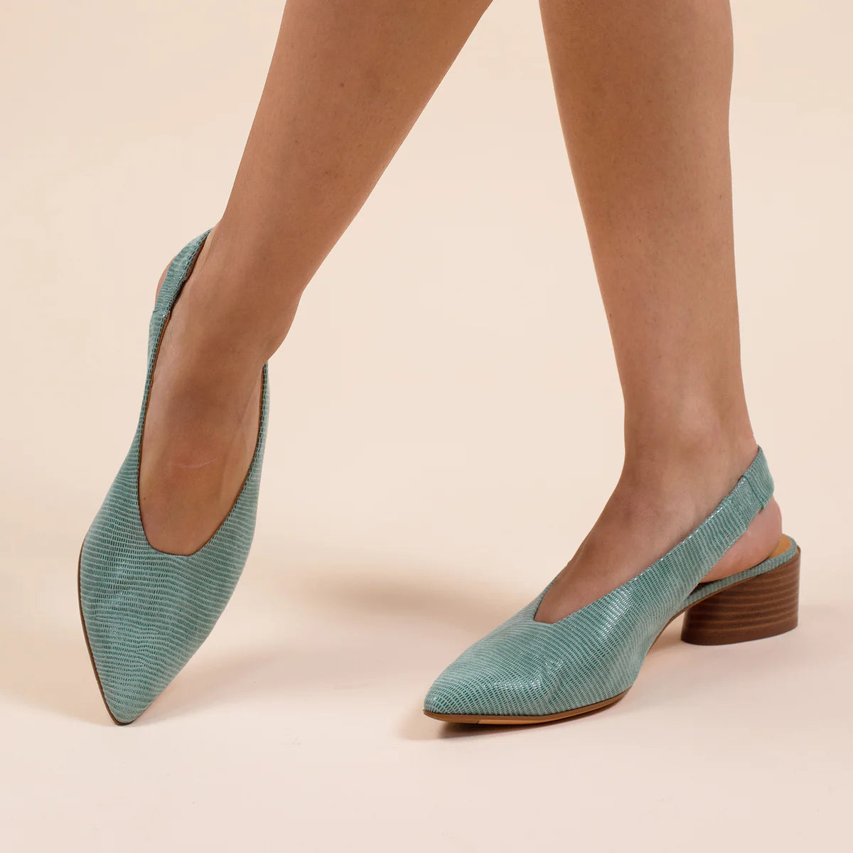 Size GuideStep into timeless sophistication with the EOS Hatti Slingback Flats. Crafted from premium leather, these flats feature a pointed toe and a comfortable mid-height block heel, offering both style and stability....