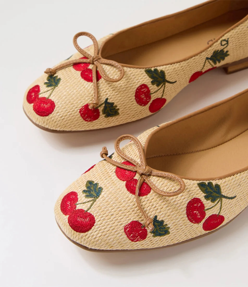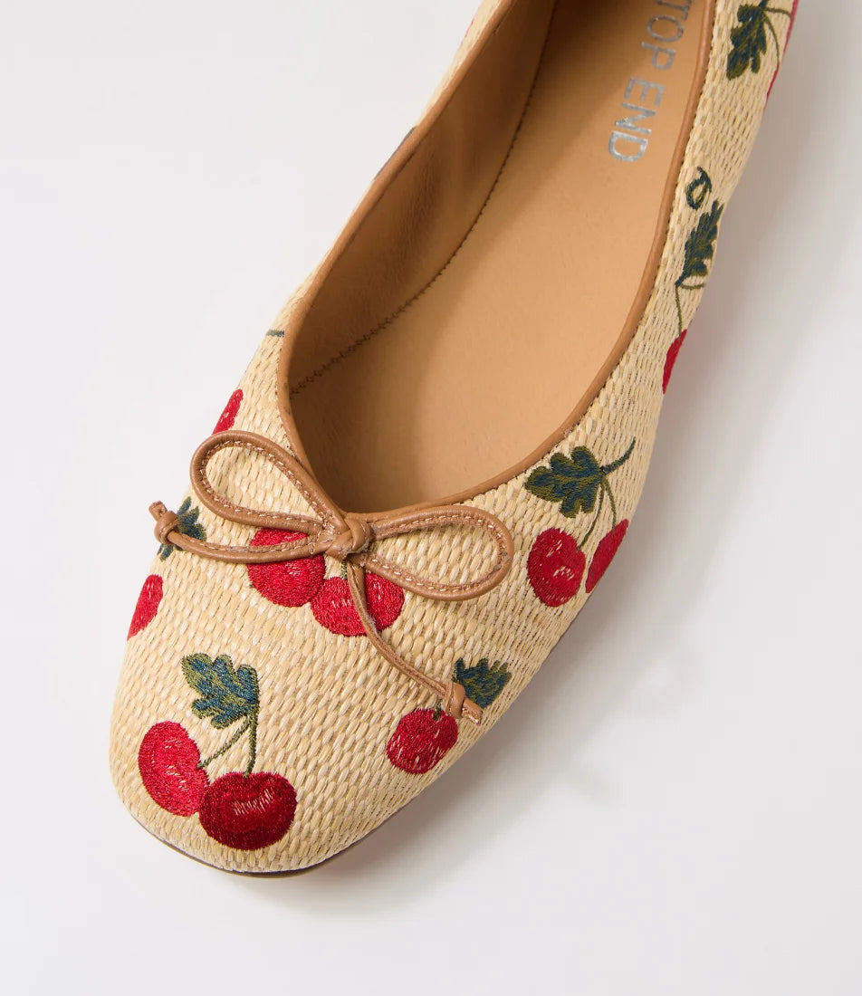 Size GuidePut some summer sweetness in your style with these embroidered ballet flats by Top End. MICNICY's woven texture and cherrylicious details are a playful approach to a classic silhouette. Material...