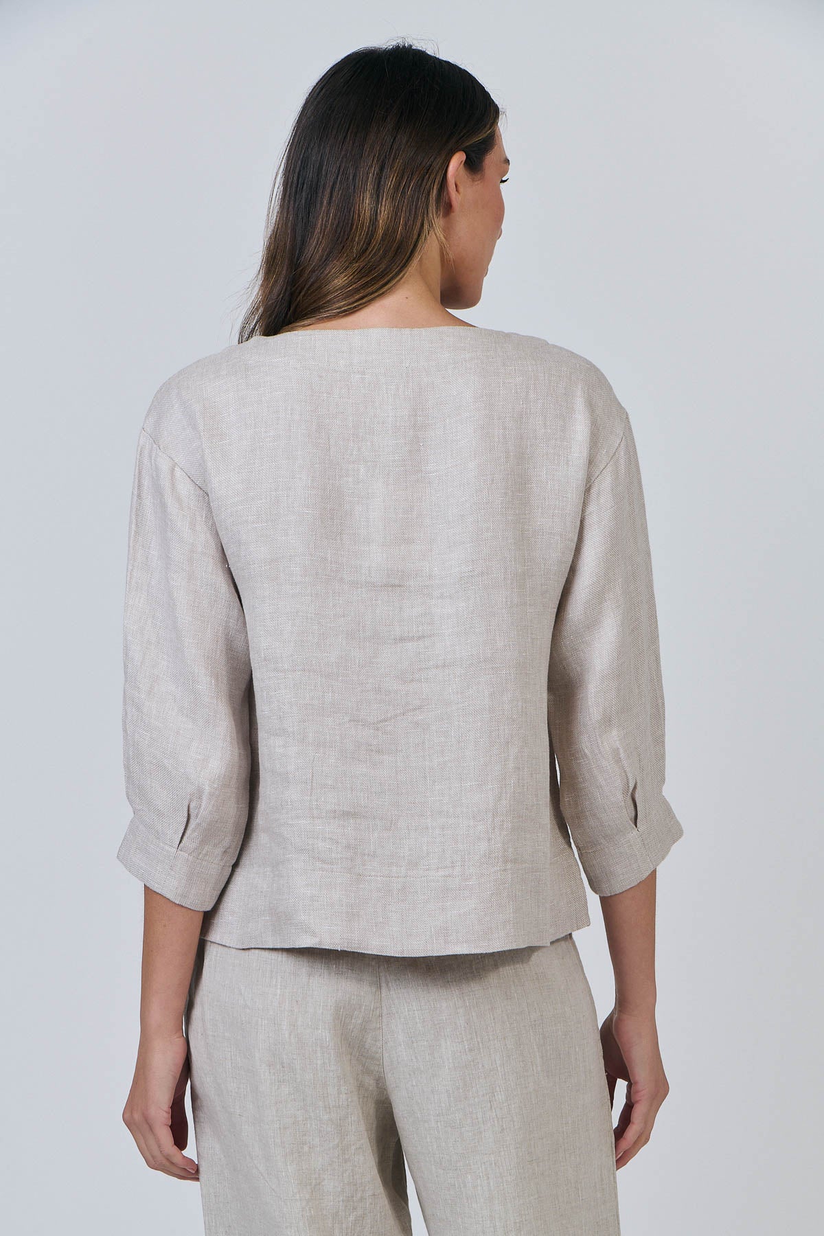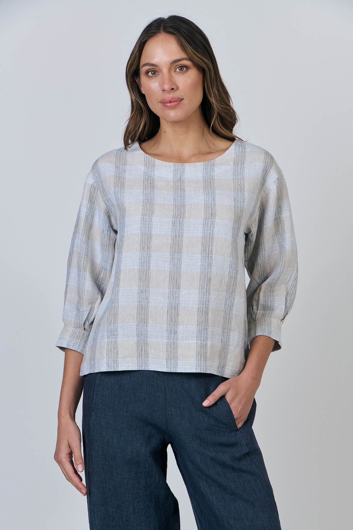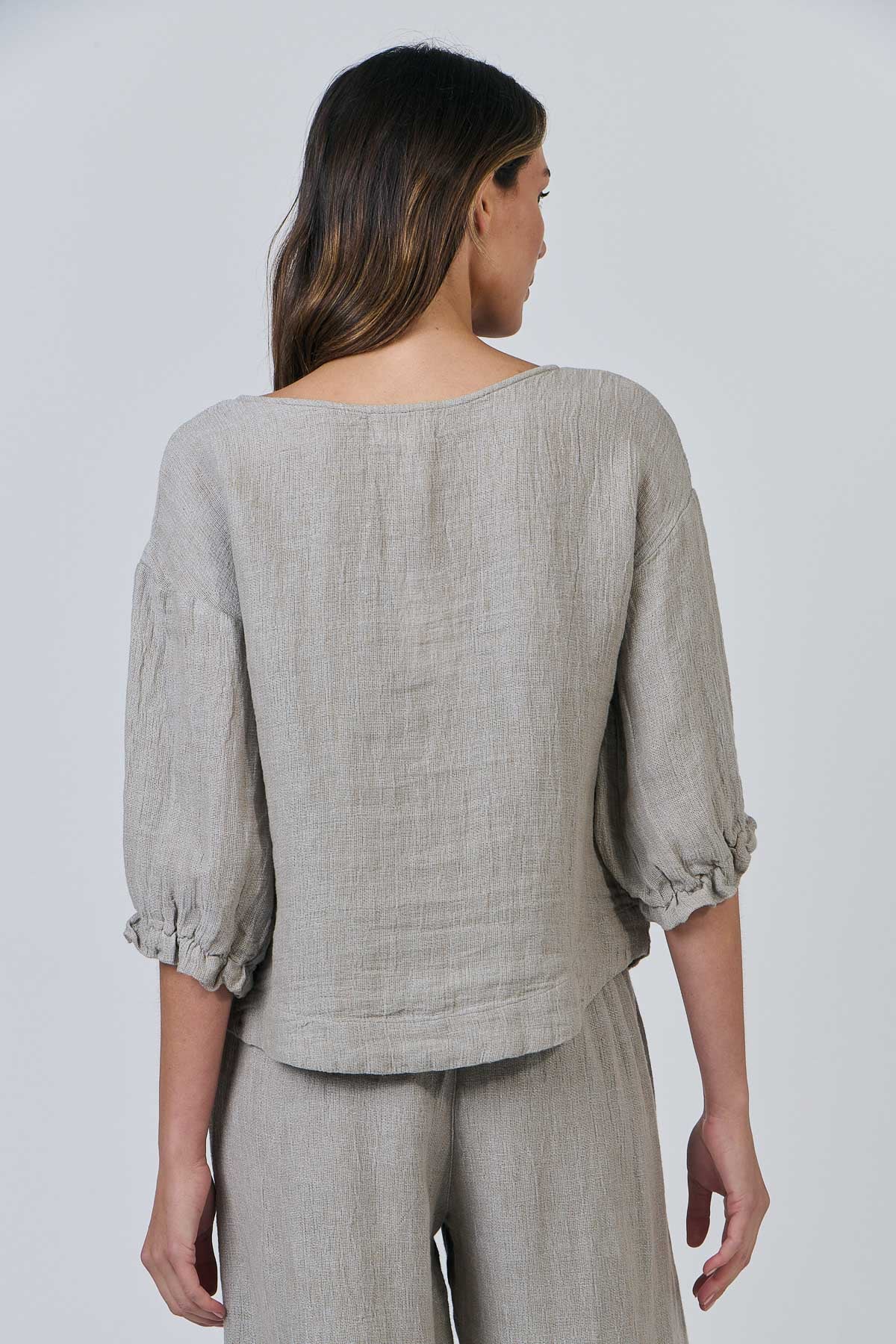 Size GuideDiscover your new signature look with this GA641 top, Featuring a relazed fit eith elegant three quarter balloon sleeves and a classic boat neckline for effortless sophistication. The breathable linen...