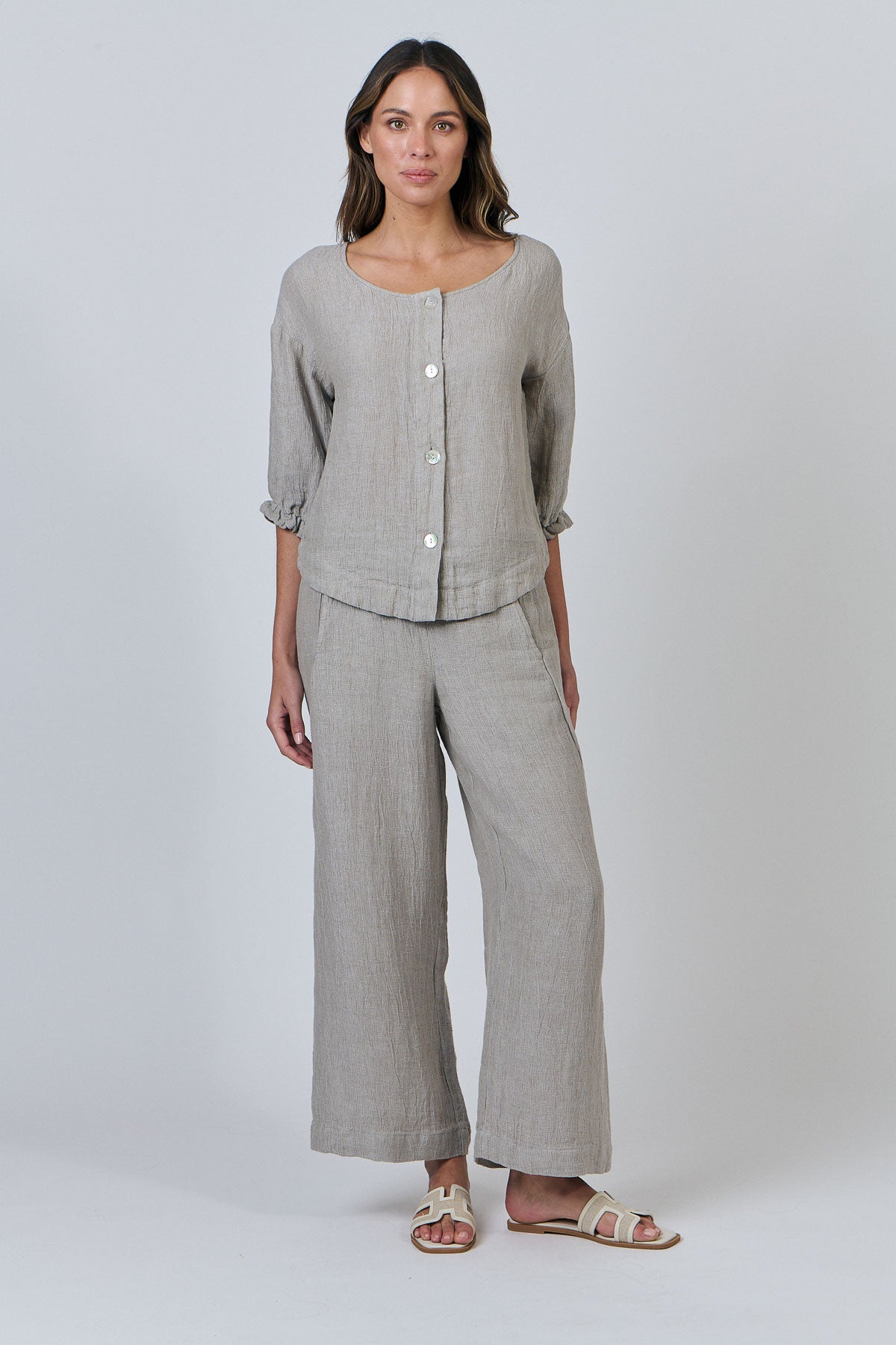 Size GuideGA539 is a gorgeous linen top that is just perfect for summer. Large buttons, drop shoulders and frilled elbow length sleeves make this a fun piece. The round neckline and...