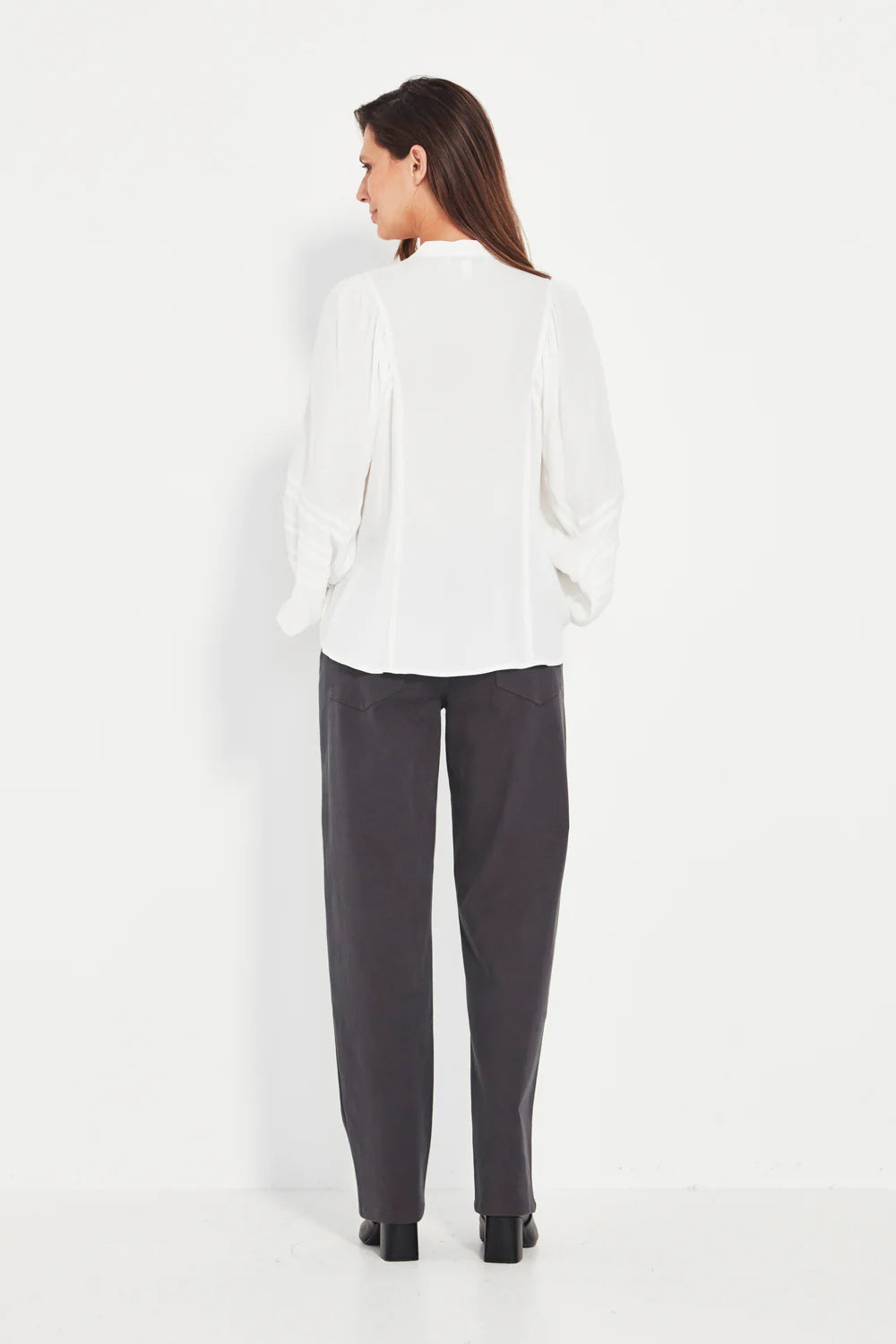 Size GuideAnkle length dress pant with slim leg profile. Single button and fly front. Angled front side pockets. Shaped through the waist with flat waistband. Slim leg tapered to the ankle...