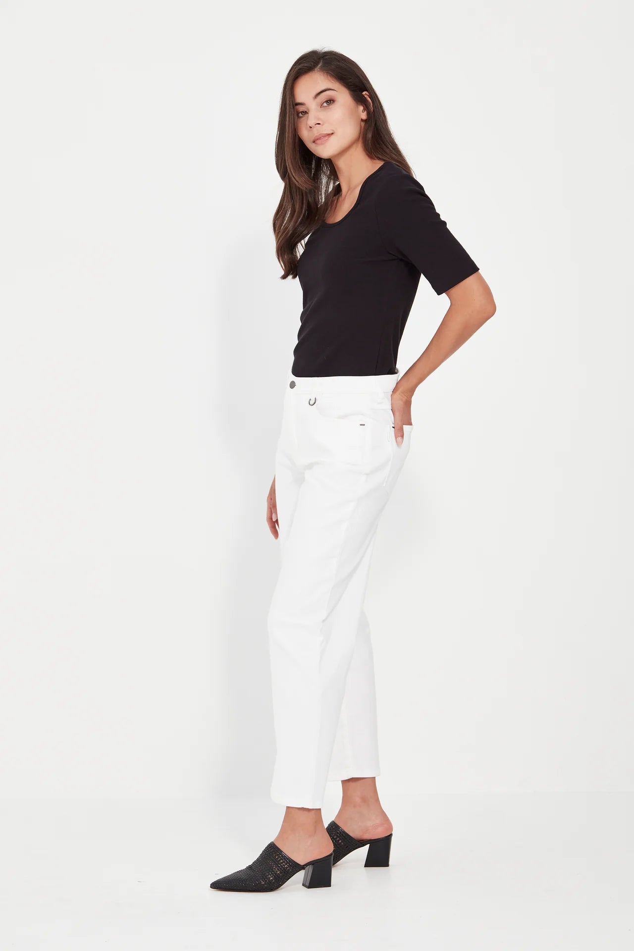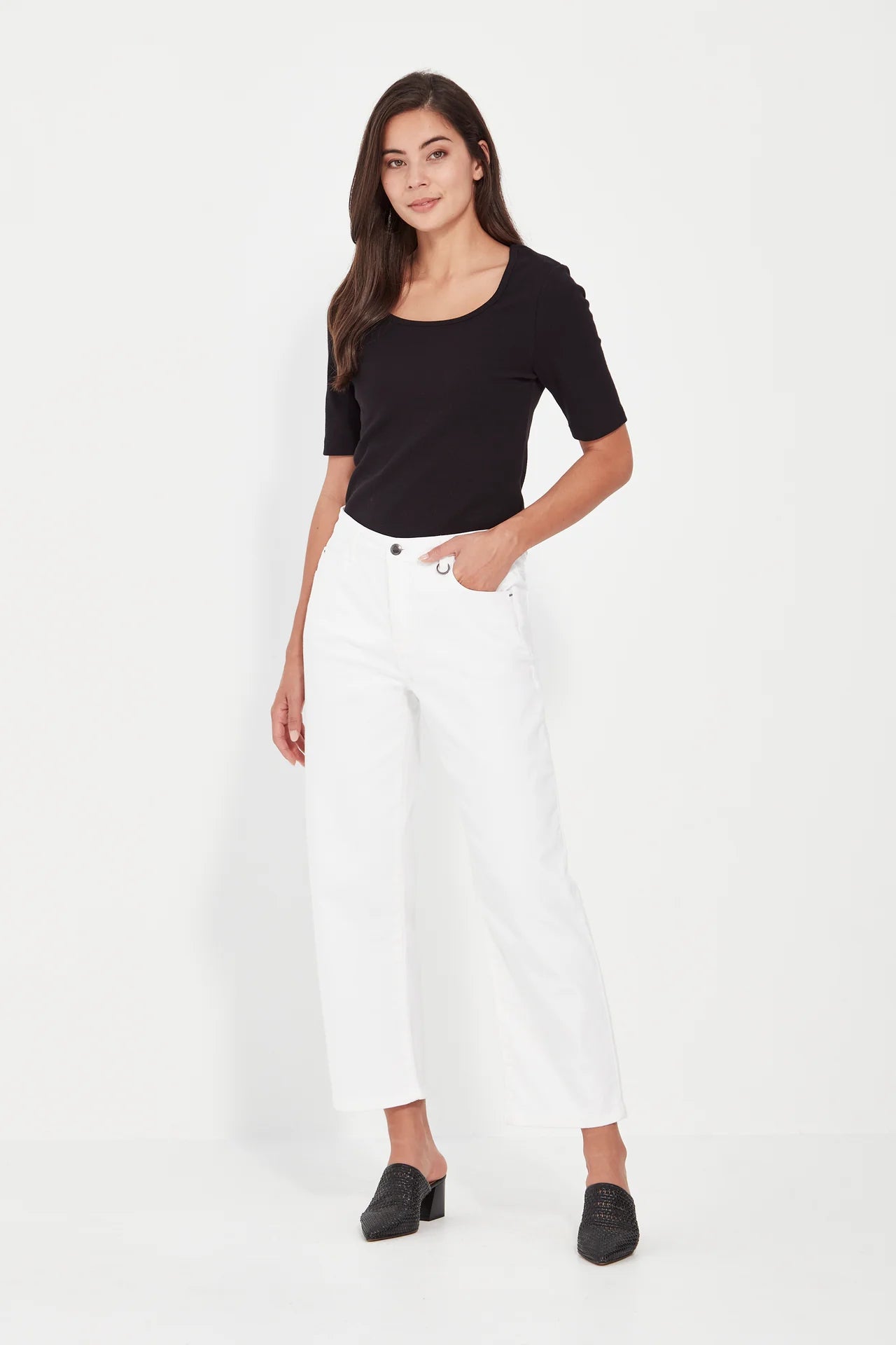 Size GuideEmbrace the relaxed sophistication of a perfectly tailored wide - leg jean. 5 pocket, fly front, wide leg jean in soft, stretch white denim. The Cruise jean is ankle length. Composition...